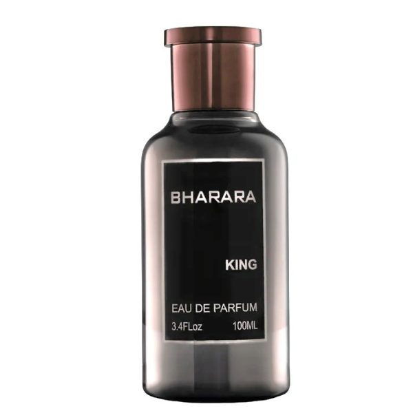 King de Bharara es una fragancia de la familia olfativa Aromática para Hombres. King se lanzó en 2021. Las Notas de Salida son naranja, bergamota y limón (lima ácida); la Nota de Corazón es notas afrutadas; las Notas de Fondo son vainilla, almizcle blanco y ámbar.