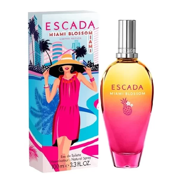Miami Blossom de Escada es una fragancia de la familia olfativa Floral Frutal para Mujeres. Miami Blossom se lanzó en 2019. La Nariz detrás de esta fragrancia es Caroline Sabas. Las Notas de Salida son sandía, moras azules y naranja; las Notas de Corazón son piña, flor de tiaré, jazmín y nardos; las Notas de Fondo son ambroxan, almizcle y sándalo.